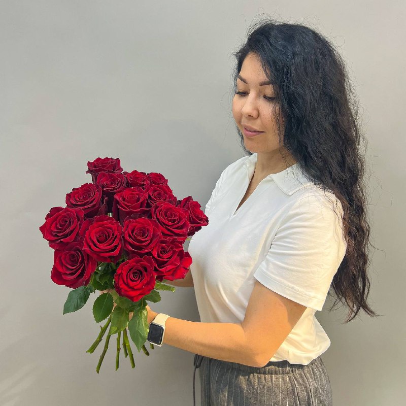 Роскошный и страстный букет из 15 элитных роз. Эти благородные цветы с крупными бархатными бутонами насыщенного алого оттенка символизируют любовь, энергию и безупречный вкус. Классическое оформление с контрастными атласными лентами подчеркивает глубину цвета и элегантность композиции, делая её идеальным выражением сильных чувств.