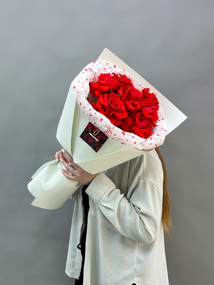Подарите любимой нежность, заключенную в сердце! Этот утонченный монобукет составлен из 7 эквадорских роз «Nina» — сорта премиум-качества с крупными, благородными бутонами ярко красного оттенка. Каждая роза тщательно отобрана для создания гармоничной, лаконичной композиции, символизирующей восхищение, трепет и зарождающуюся любовь.
