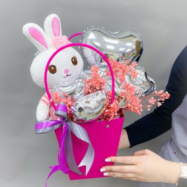 Букет из мягкой игрушки"Зайка обнимашка" Сет 1291