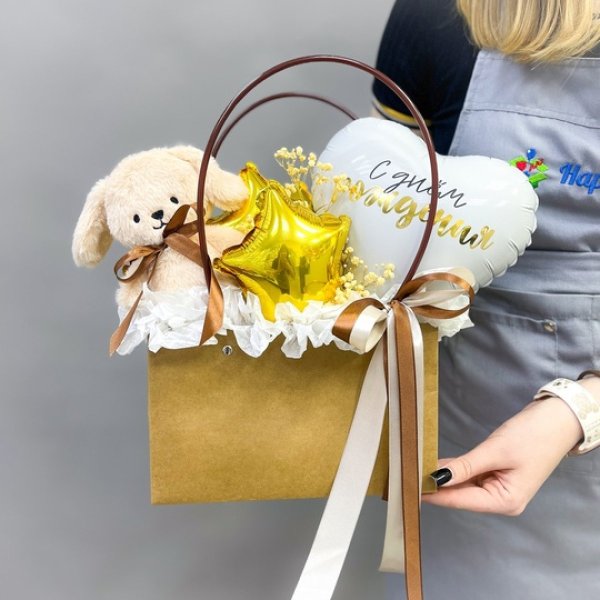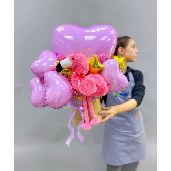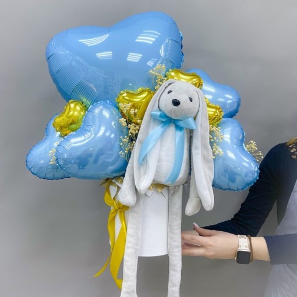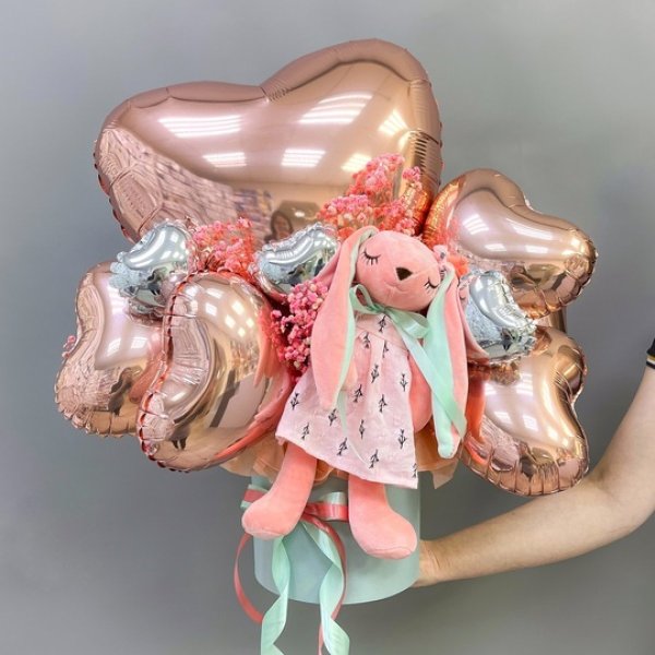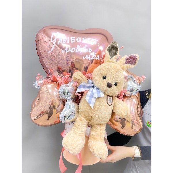 Композиция из воздушных шаров с мягкой игрушкой Сет 1179