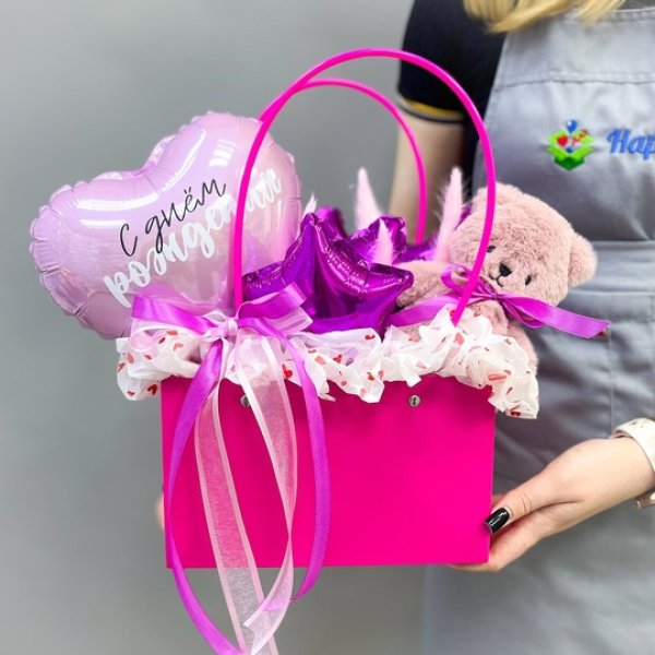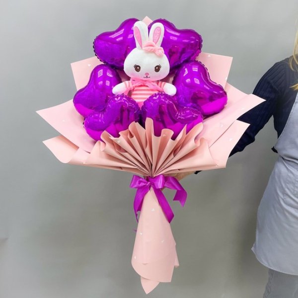 Букет из воздушных шаров с игрушкой "Яркая фуксия" Сет 1660