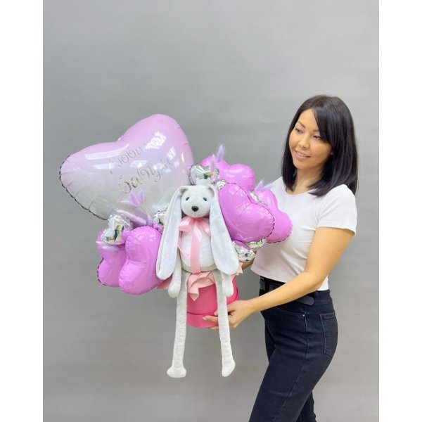 Композиция из воздушных шаров "Зайка с бантиком" Сет 1554
