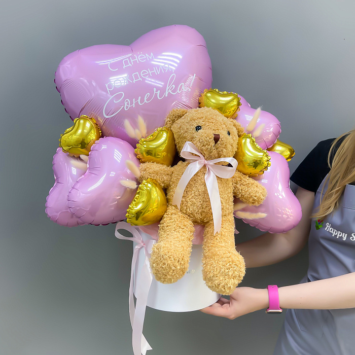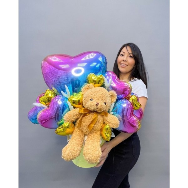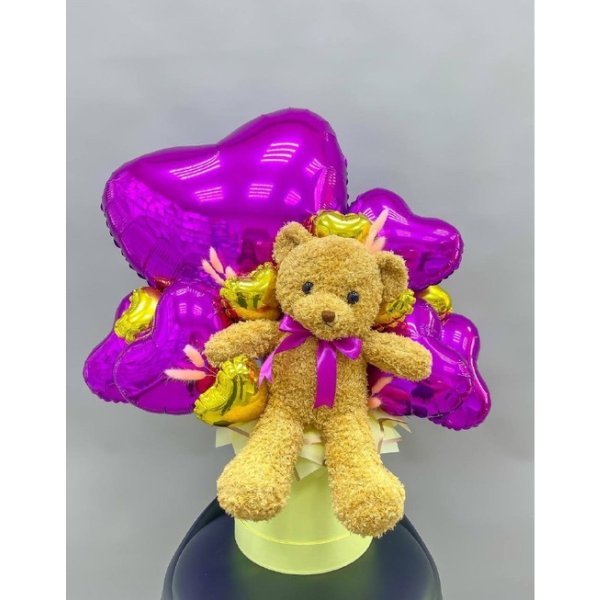 Композиция из воздушных шаров с мягкой игрушкой Сет 879