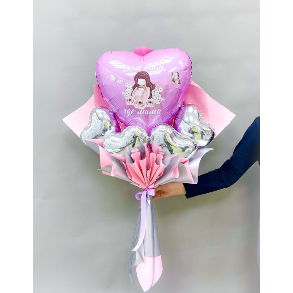 Букет из воздушных шаров "Розово-серебряное чудо" Сет 1543