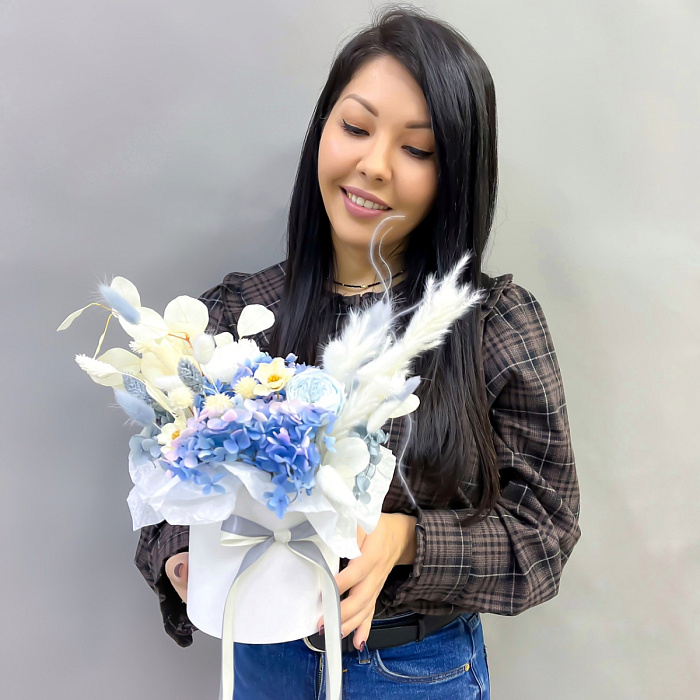 Композиция из сухоцветов для интерьера в коробке  Сет 1893
