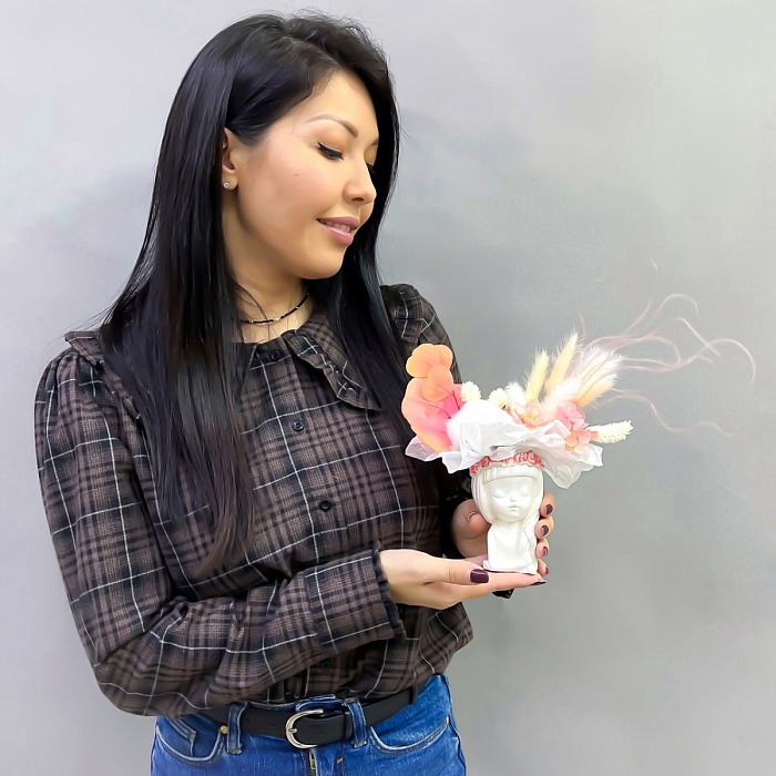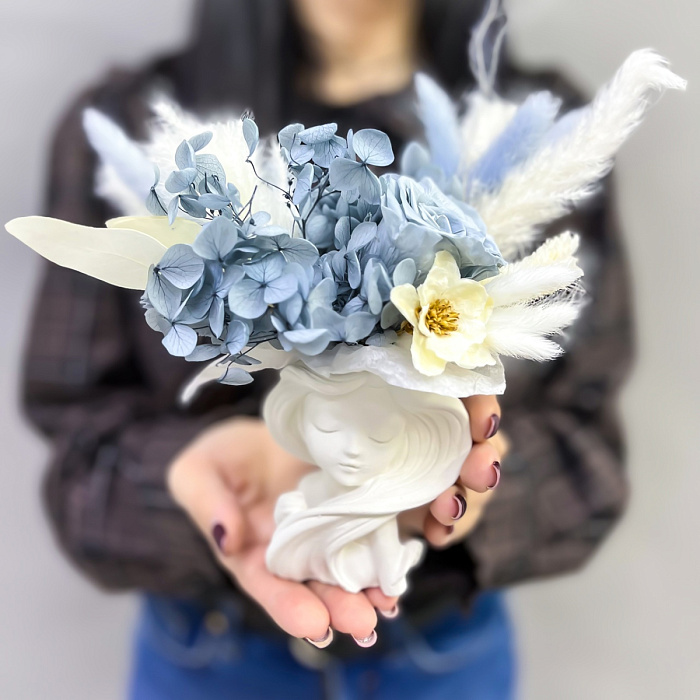 Композиция из сухоцветов в кашпо девушки с косой Сет 1894