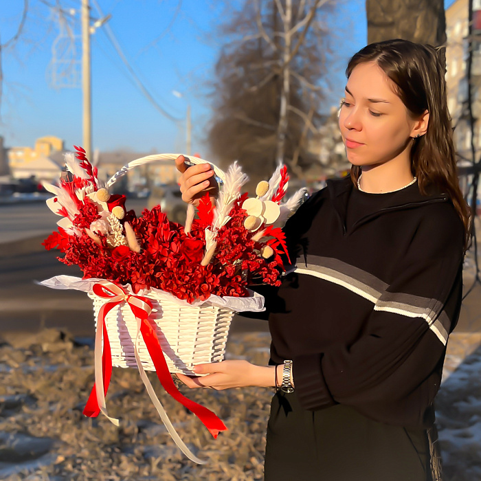 Композиция из сухоцветов в корзине "Алая страсть" Сет 1937
