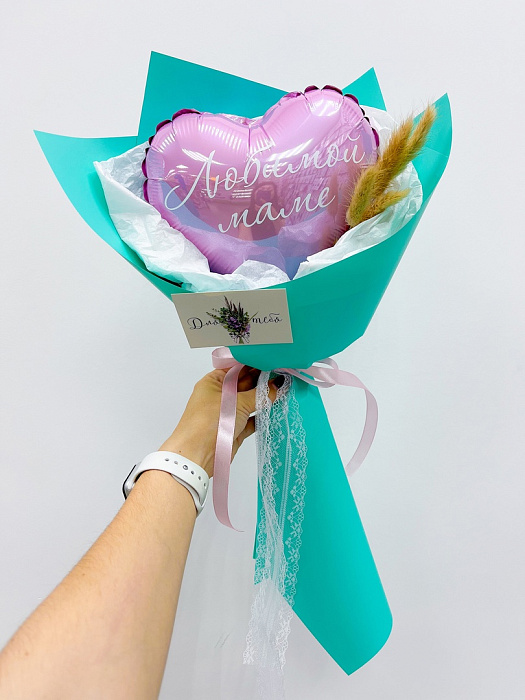Мини-букет с сердцем и сухоцветом "Любимой маме" Сет 1891