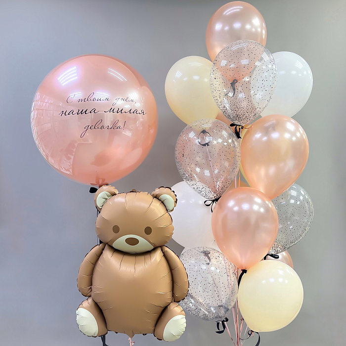 Набор гелиевых и воздушных шаров "Медвежонок счастья" Сет 2086