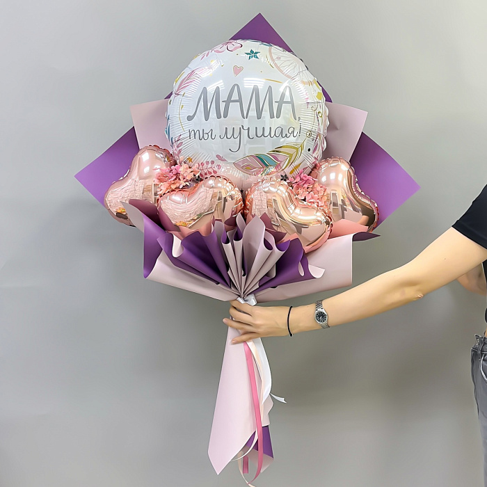 Набор гелиевых шаров "Лучшей маме на свете" и сухоцветов Сет 1897