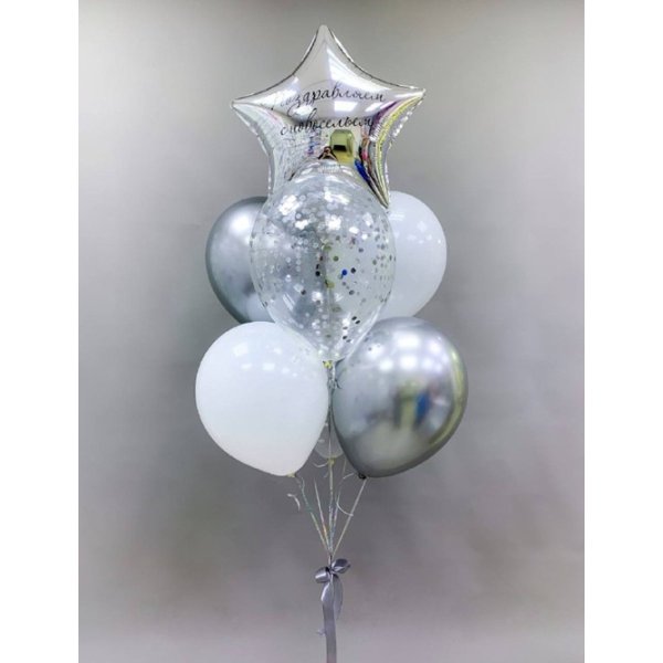 Шар 18 дм (45 см) звезда серебро – 1 шт;