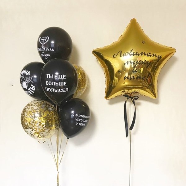 Шар 12"дм С РИСУНКОМ Настоящему Мужчине Black&aqua blue- 1шт