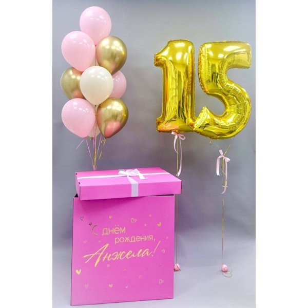 Коробка-сюрприз с гелиевыми шарами внутри "Розовая мечта" Сет 2055