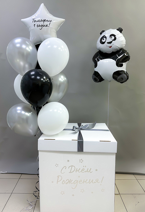 Коробка-сюрприз с гелиевыми шарами внутри "Чёрно-белая вечеринка" Сет 1938