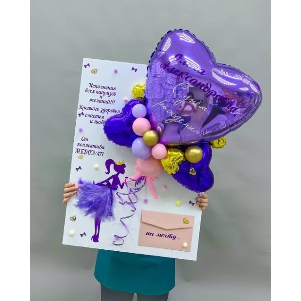 Декор открытки: надписи, наклейка в стиле Барби с перьями.