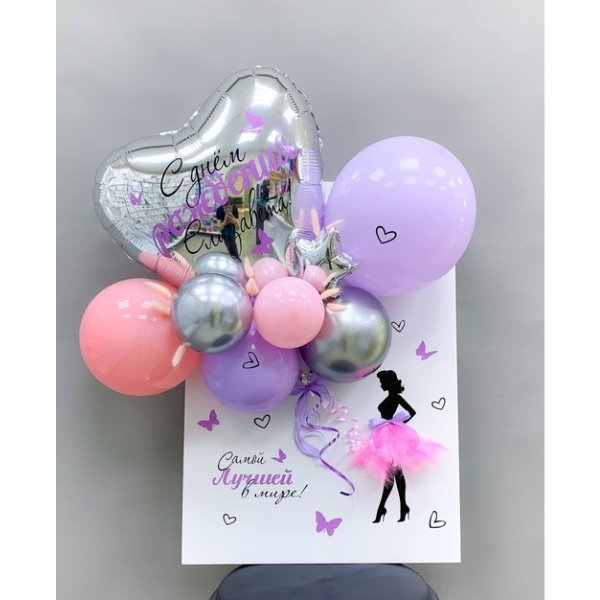 Декор открытки: надписи, наклейка силуэт девушки с перьями.