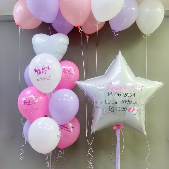 Набор гелиевых шаров на выписку "Нежная Радость" Сет 990