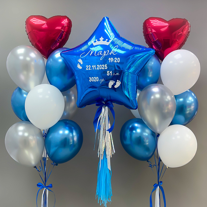Набор гелиевых шаров на выписку "Мальчиковое счастье" Сет 1953