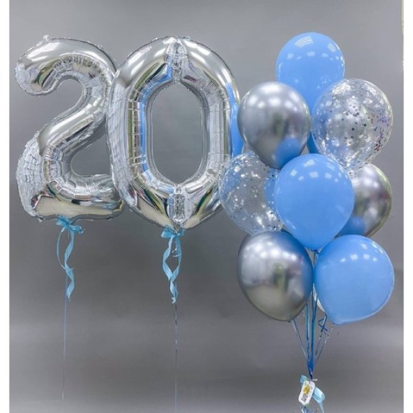 Шар 40 дм (100 см) цифра «Агура» серебро на грузе – 2 шт;
