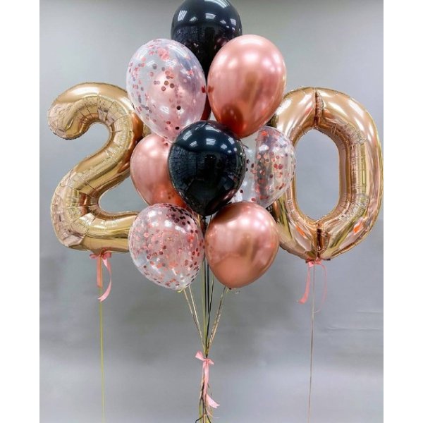 Шар 40 дм (100 см) цифра «Агура» розовое золото на грузе – 2 шт;